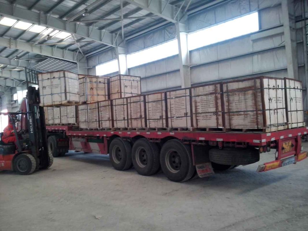 The bricks are packed on wooden pallet with papers in each layer and PP film wrapped outside of the whole pallet.